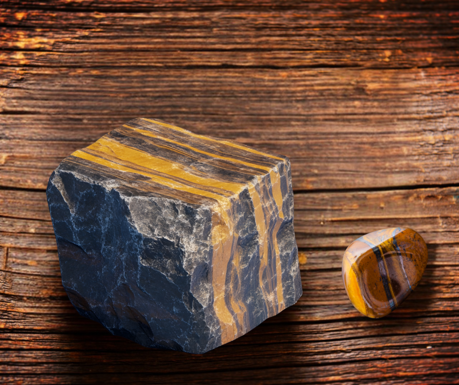 Il est né de la transformation du quartz et de minéraux riches en fer, ce qui lui donne son éclat doré si particulier.