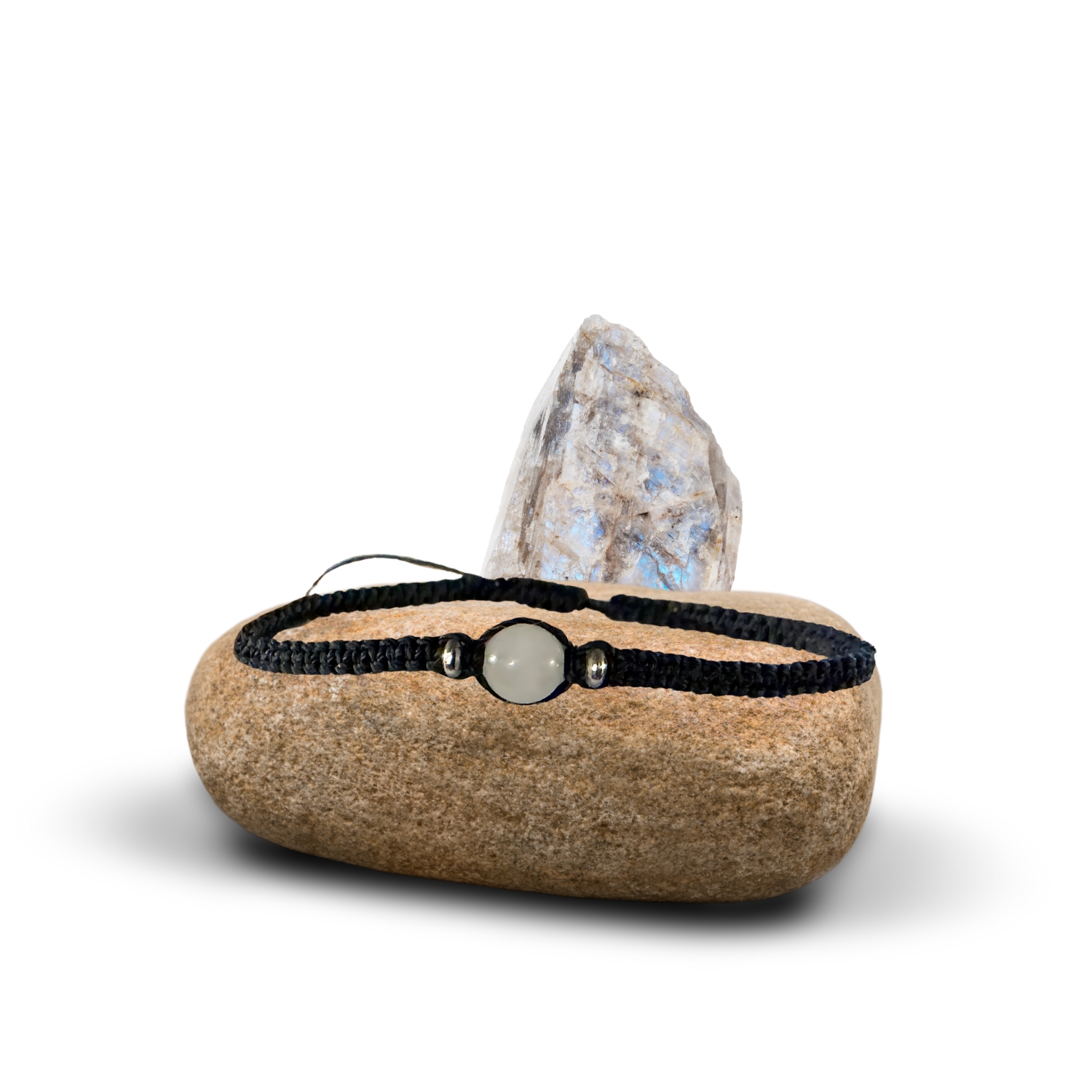Bracelet en Pierre de Lune – Intuition, Douceur & Cycles de vie | Fait main en macramé